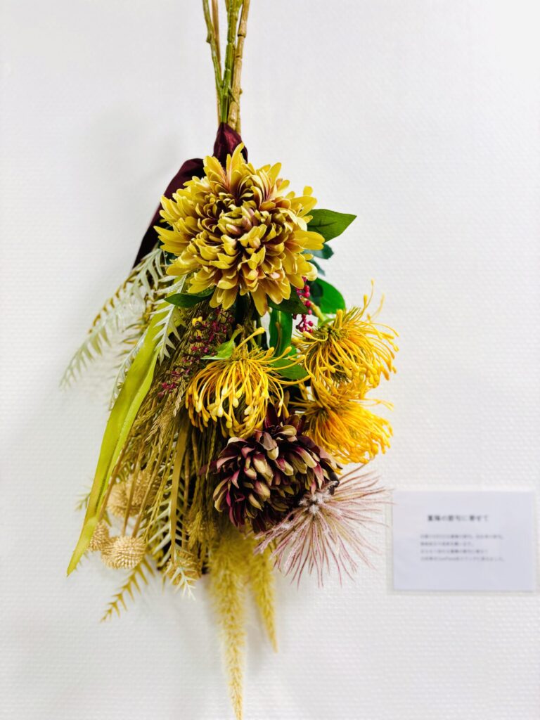 秋をテーマにした作品のタイトルには、花材選びや色合わせへの想いが込められています。それぞれの作品が生み出すストーリーに一足早い秋をお楽しみください。