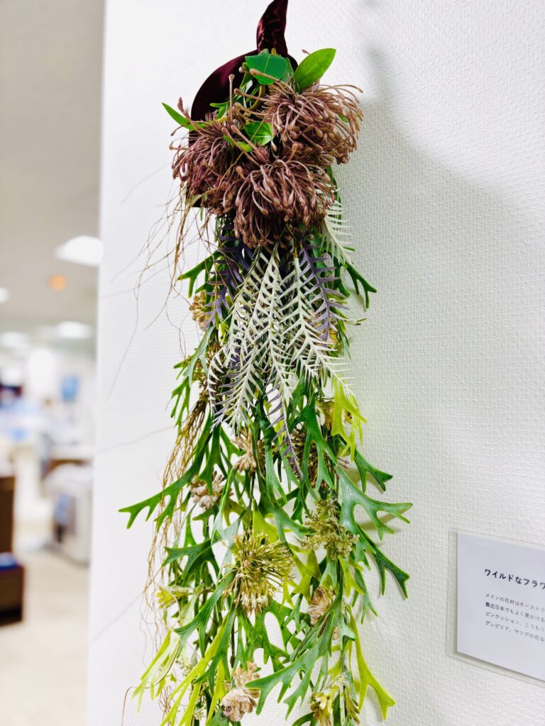 作品一つ一つ違う形・花材でありながら、同じ空気感をまとうドライフラワーの世界に癒されます。