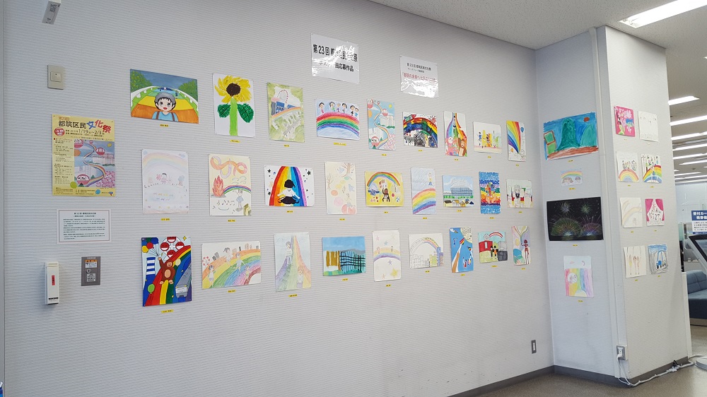 今月2月いっぱいは、都筑区民文化祭を表現した素晴らしい応募作品がずらりと展示されています。