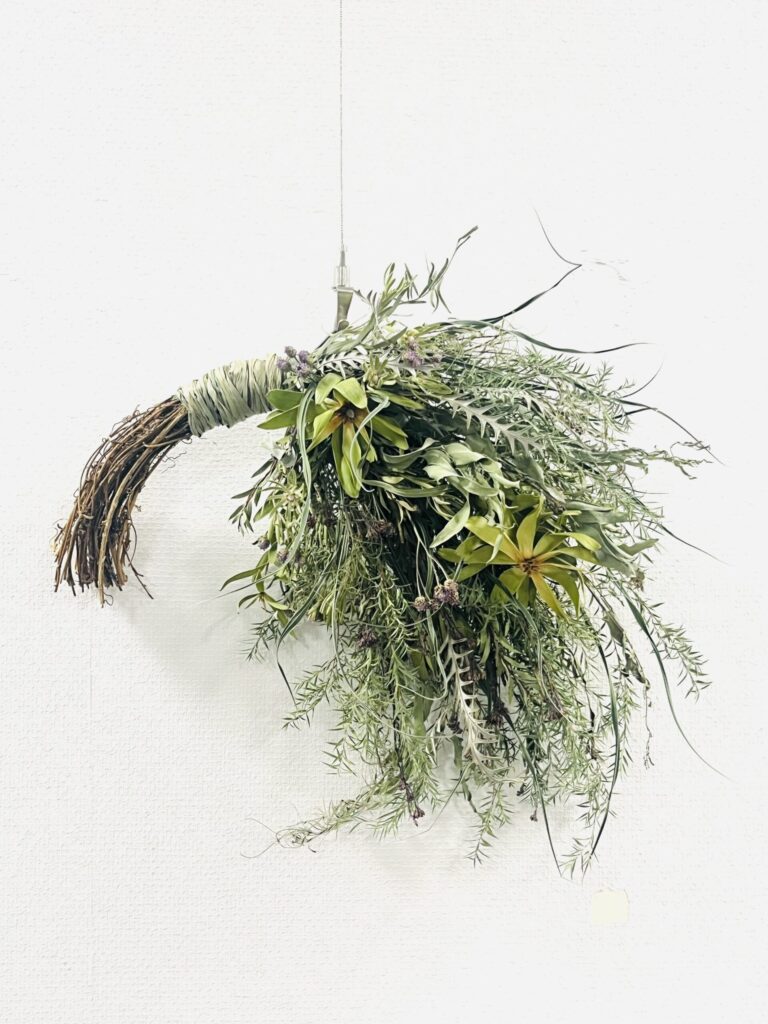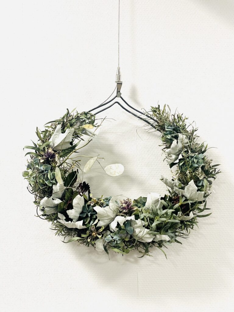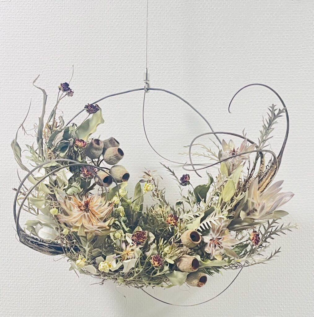 作品一つ一つ違う形・花材でありながら、同じ空気感をまとうドライフラワーの世界に癒されます。