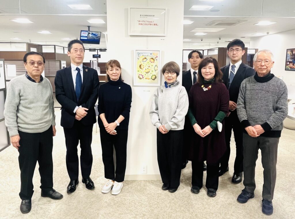 今月の横浜銀行港北ニュータウン南支店の展示は、文化祭のキャッチフレーズと共にポスター画にご応募頂いた作品を飾らせて頂きました。