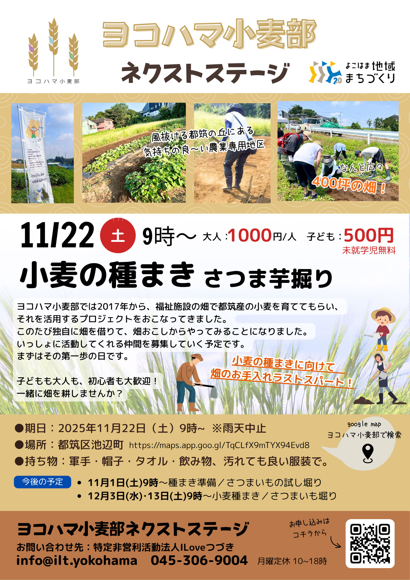 【募集】11/22(土)9時~11時 小麦の種まきとさつまいも掘り